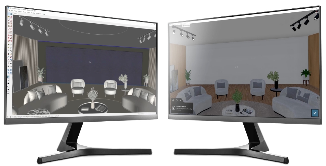 Con la sincronización dinámica del viewport, puedes diseñar más rápido, experimentar libremente y mantenerte en tu flujo creativo, sin salir nunca de SketchUp.